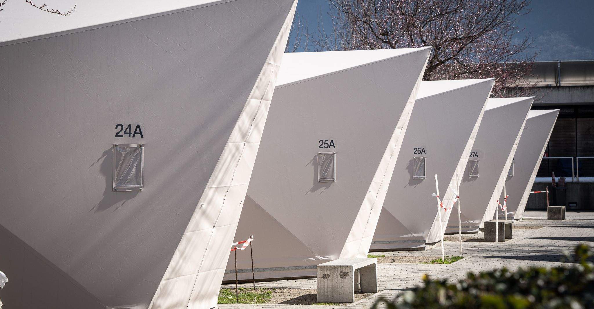 At the Centro Sportivo Tenero, a familiar camping landscape was reimagined through the replacement of the existing tent infrastructure with a new generation of textile structures. The challenge was not simply to renew aging units, but to create a tent architecture that would preserve the spirit of the site while offering a clearly improved spatial and climatic quality.