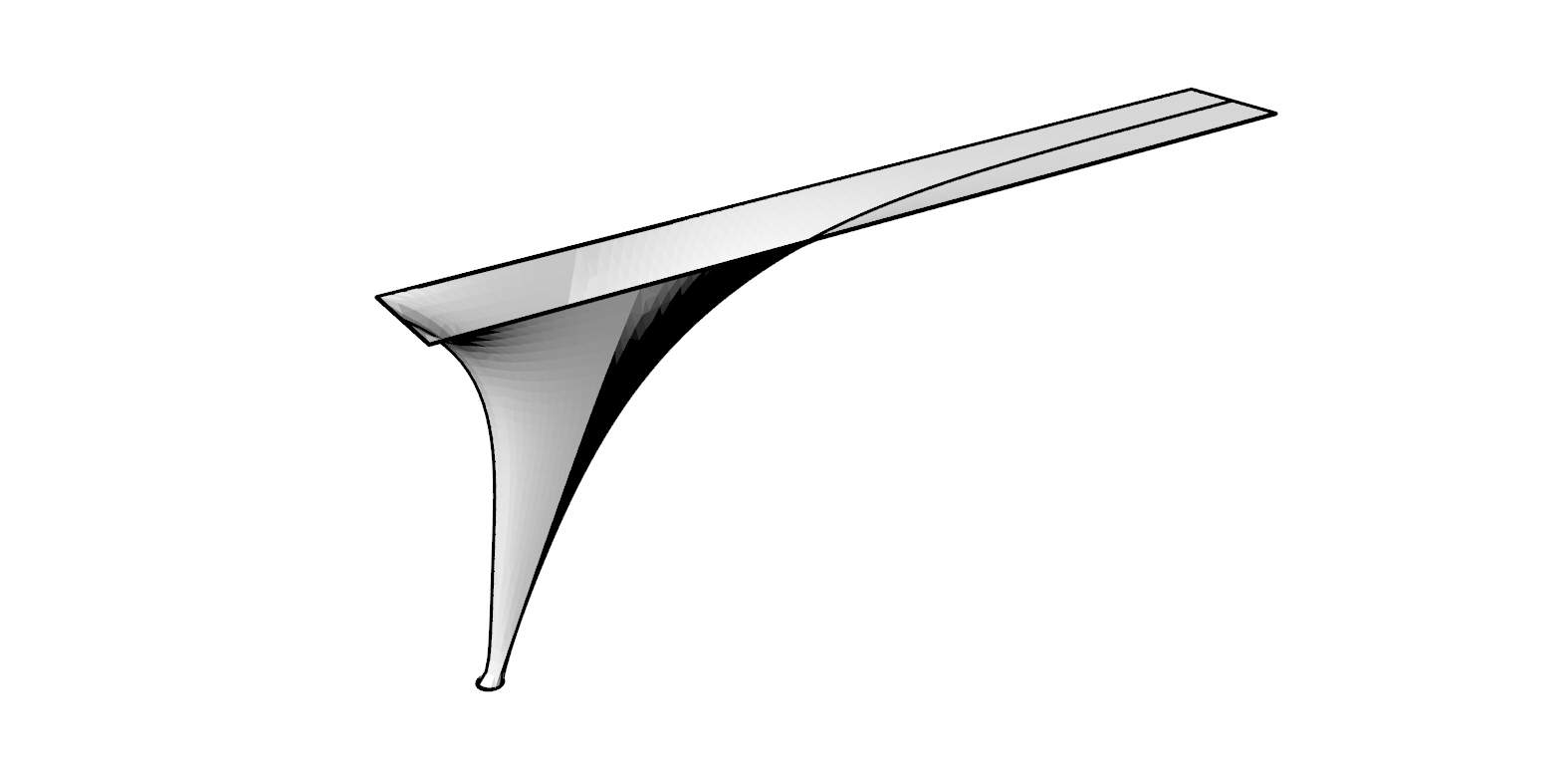 I then transformed the abstract surface into curvilinear, form-finding-like geometries. This morphing makes it evident: the desired shape requires valley cables (kein/kehlseile) for form generation and load transfer.
